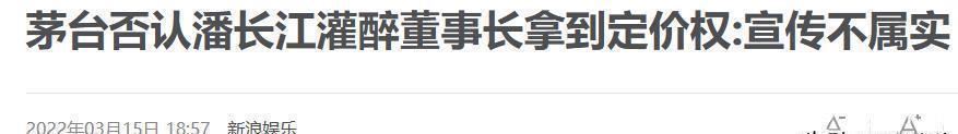 参考链接新浪娱乐报道,茅台方面否认了关于潘长江灌醉董事长并因此获得定价权的传闻,称相关宣传不属实,时间是2022年3月15日。